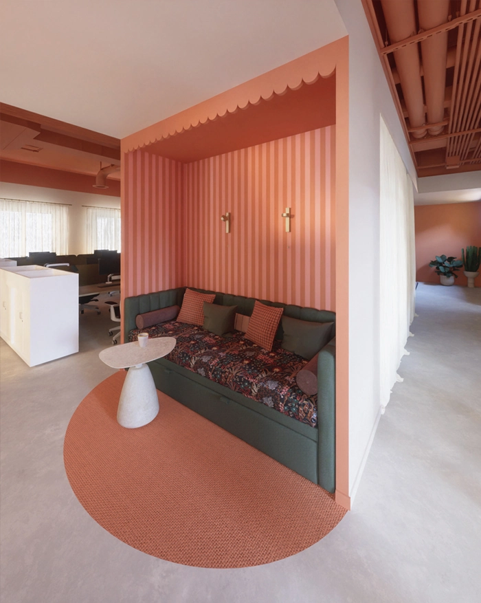 Transformation complète d’un espace de travail intégrant open space, salles de réunion, espaces collaboratifs informels et bureau de direction. Un projet conçu pour optimiser le confort et la productivité en conciliant fonctionnalité, qualité des usages et bien-être au travail.